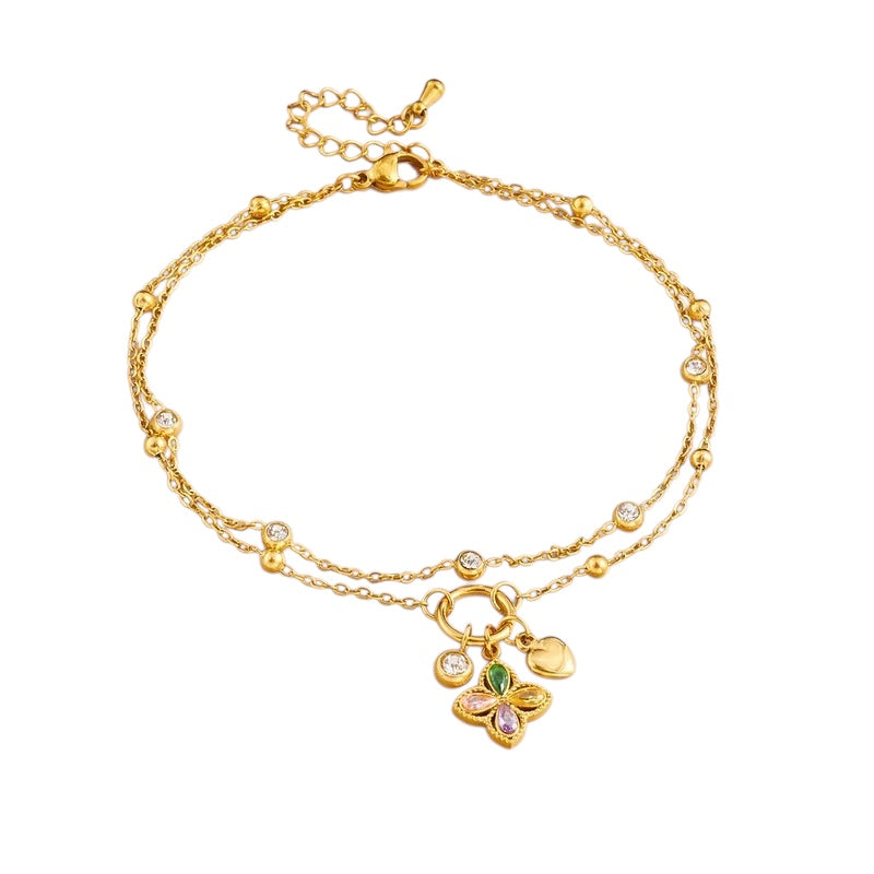 Βραχιόλι ποδιού με διπλή αλυσίδα και πολύχρωμα ζιργκόν- AN025