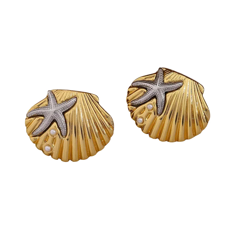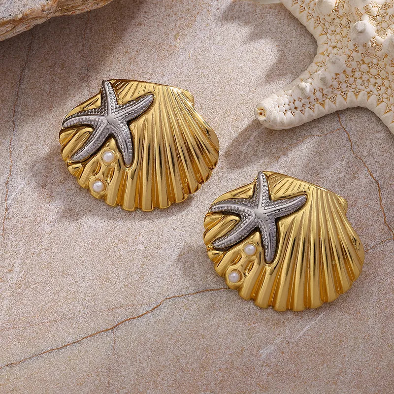 Σκουλαρίκια επιχρυσωμένο ατσάλι με κοχύλια και αστερίες - EA787