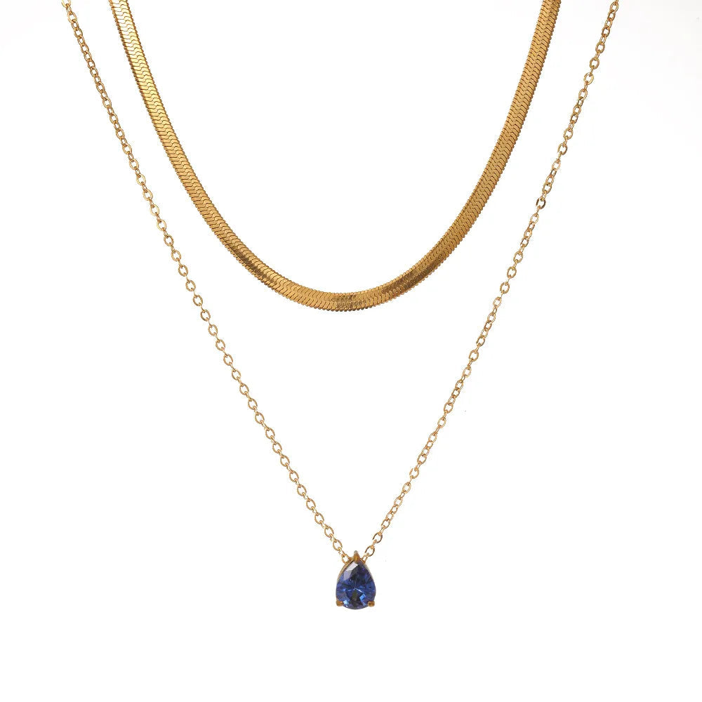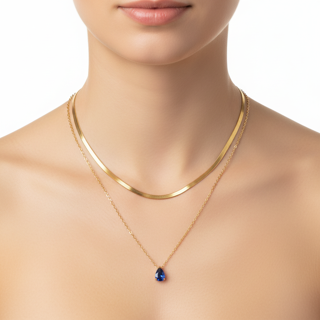 Κολιέ επιχρυσωμένο ατσάλι διπλό με μπλε zircon-NE302
