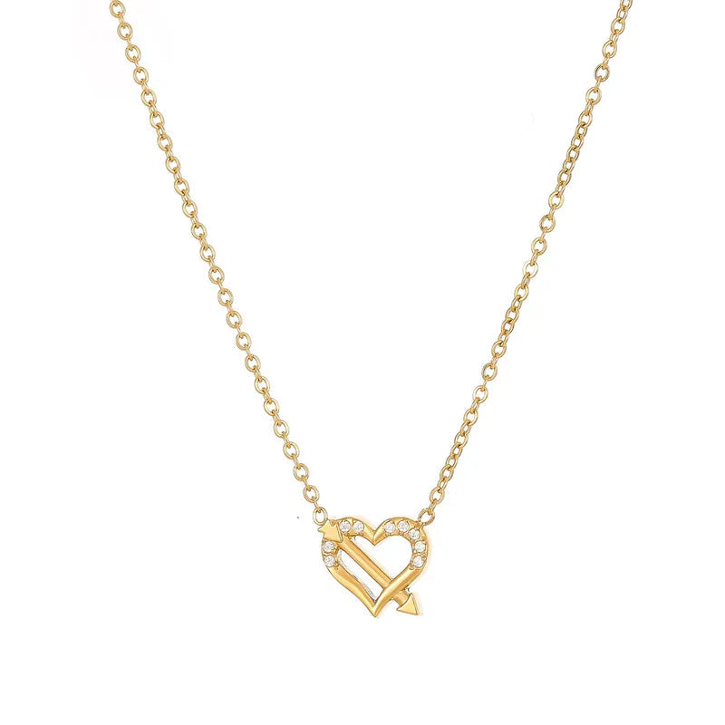 Κολιέ επιχρυσωμένο ατσάλι καρδιά και βέλος-NE301