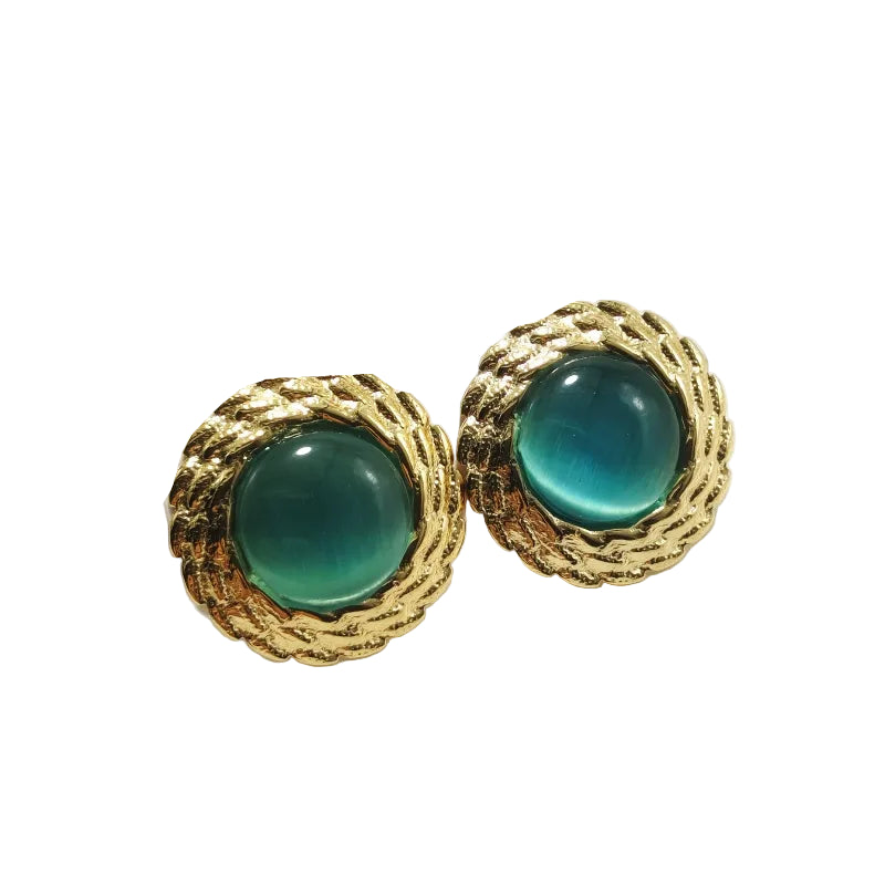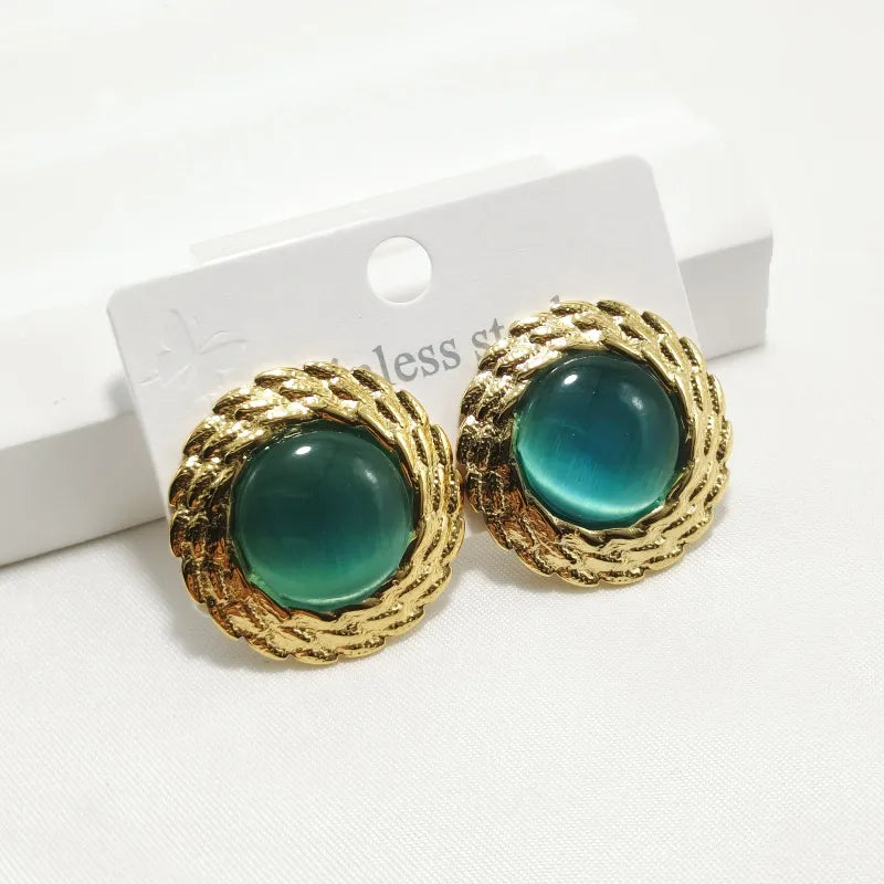 Σκουλαρίκια επιχρυσωμένο ατσάλι στρόγγυλα πράσινα-EA519