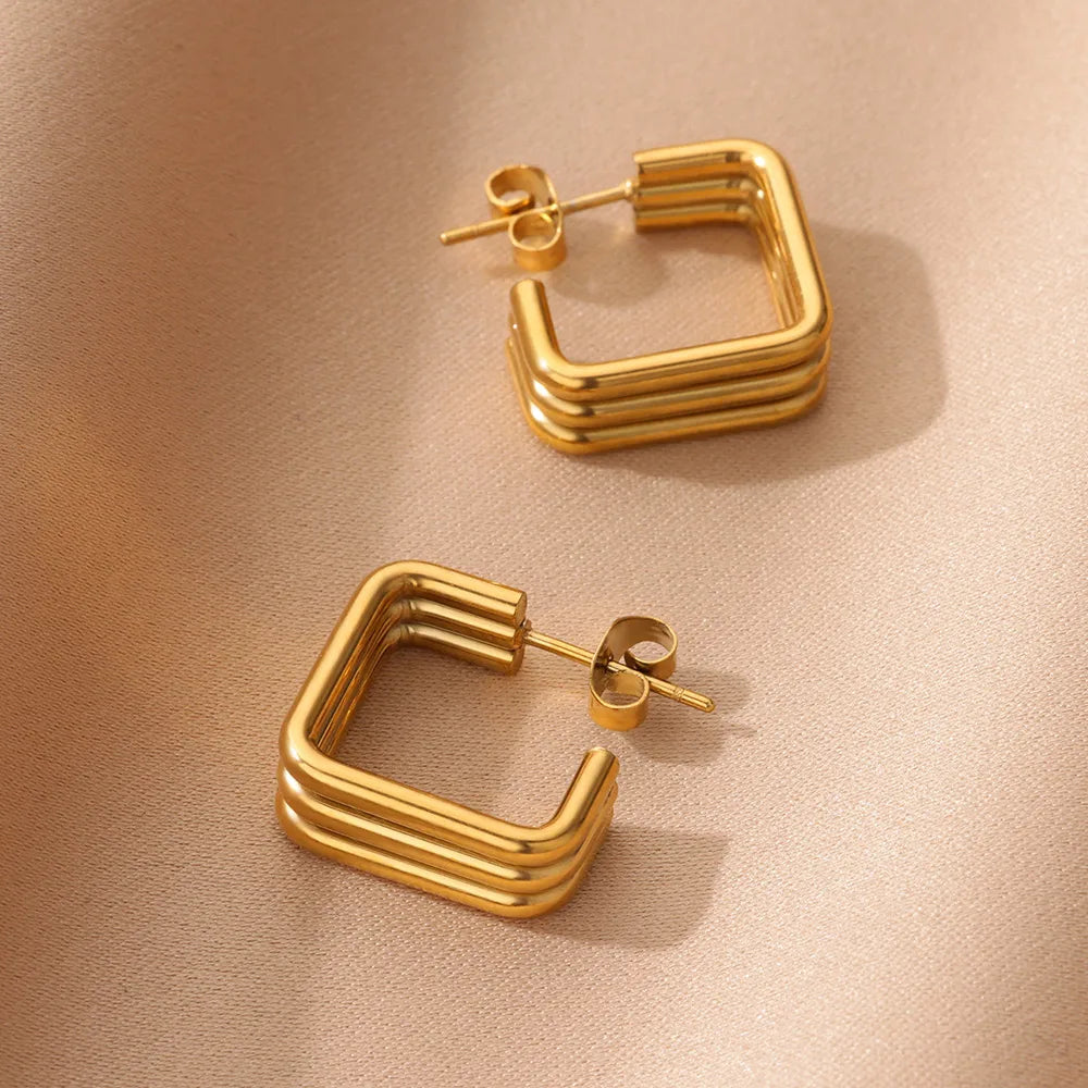Σκουλαρίκια επιχρυσωμένο ατσάλι τετράγωνα-EA061