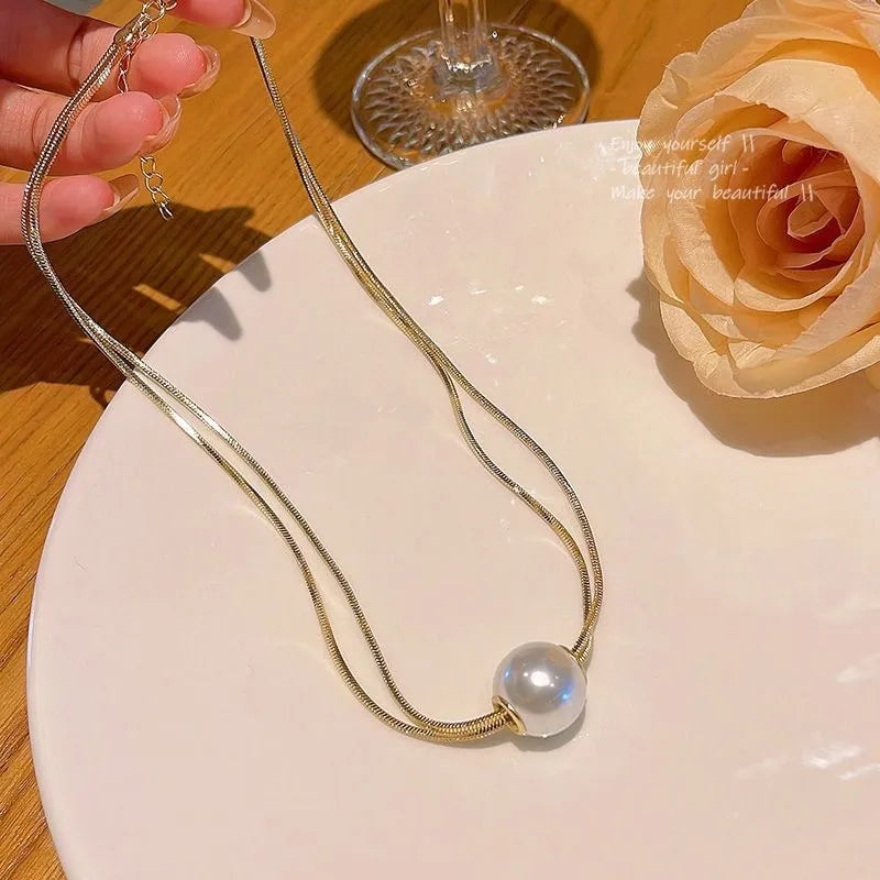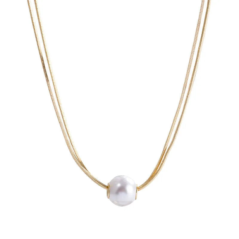 Κολιέ επιχρυσωμένο ατσάλι με πέρλα- NE656