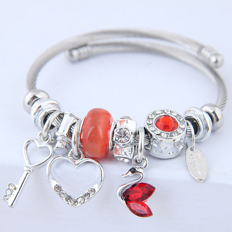 Βραχιόλι ατσάλι με κόκκινες λεπτομέρειες-BR088