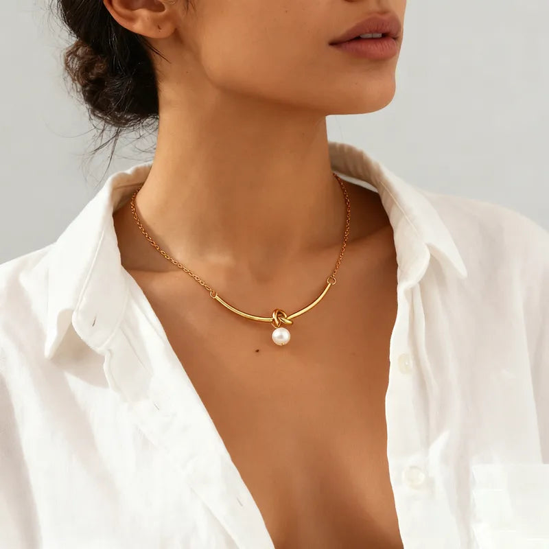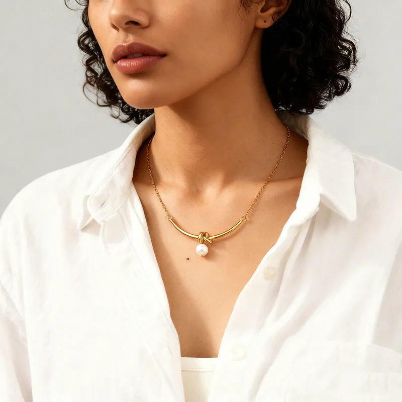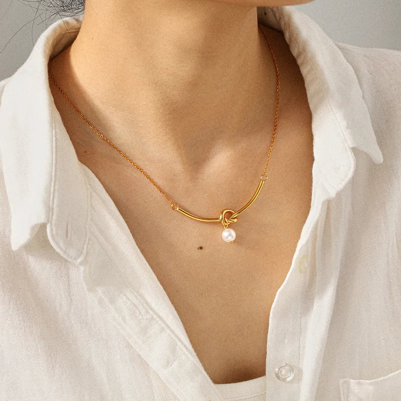 Κολιέ επιχρυσωμένο ατσάλι μακρύ με δέσιμο και πέρλα-NE554