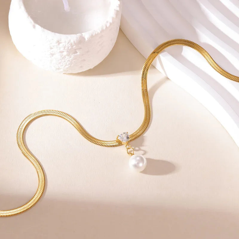 Κολιέ επιχρυσωμένο ατσάλι πέρλα με zircon-NE558