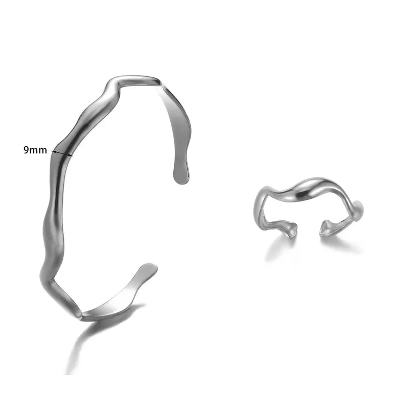Σετ ατσάλι βραχιόλι και δαχτυλίδι-SET072