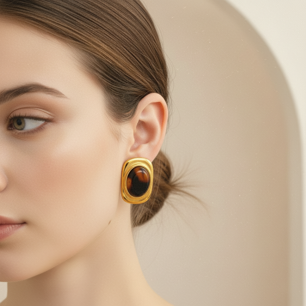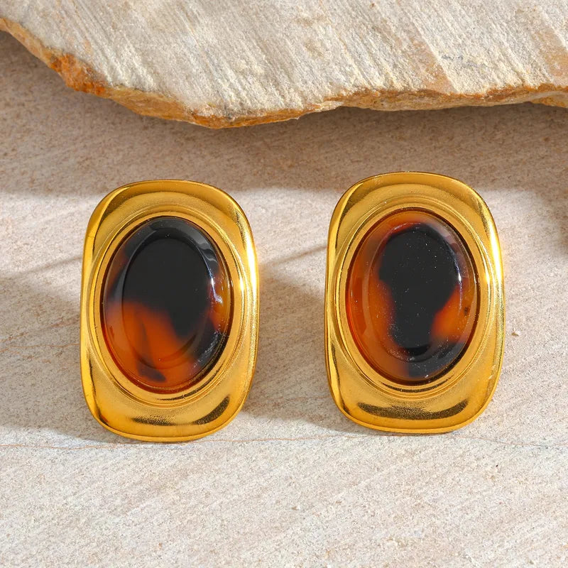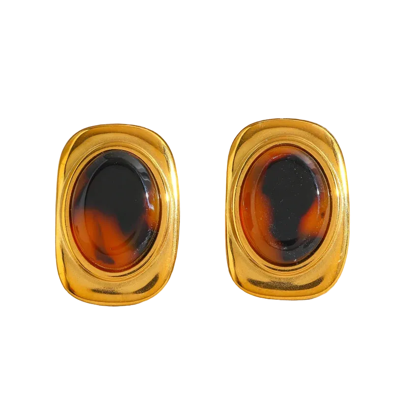 Σκουλαρίκια επιχρυσωμένο ατσάλι με δίχρωμη ρητίνη-EA082