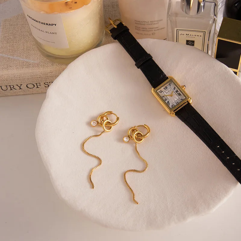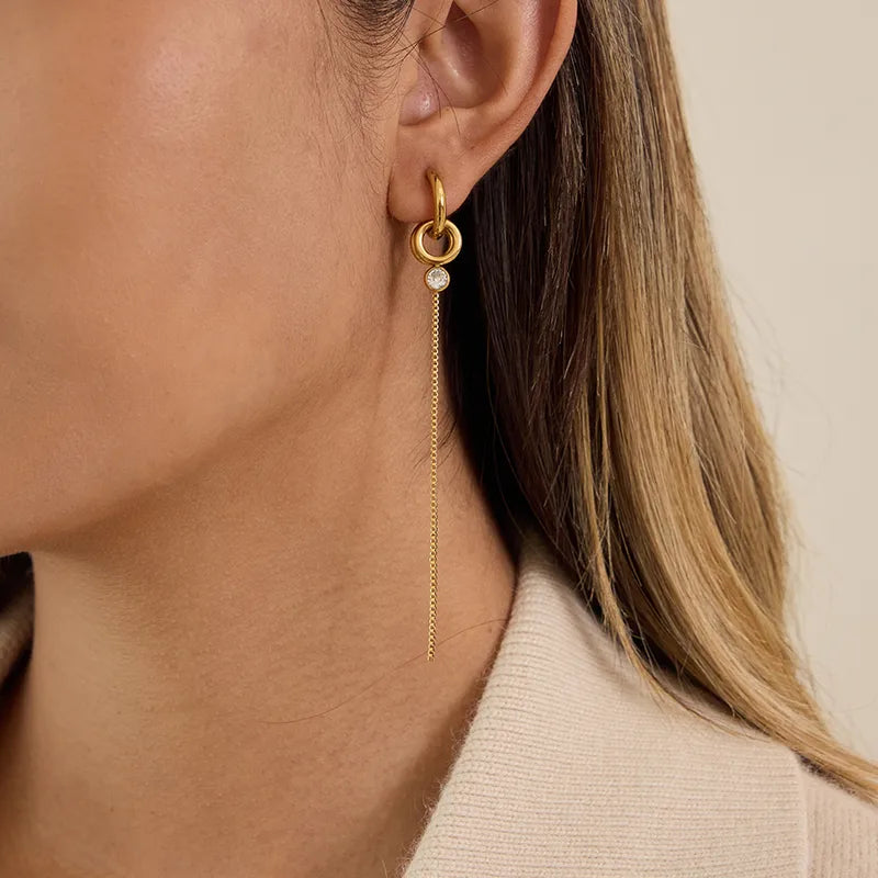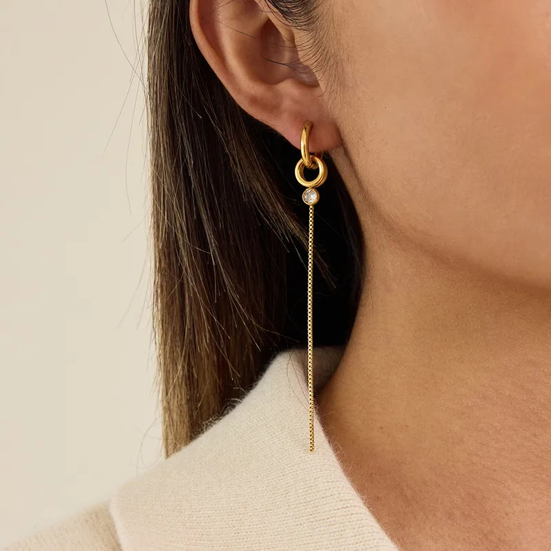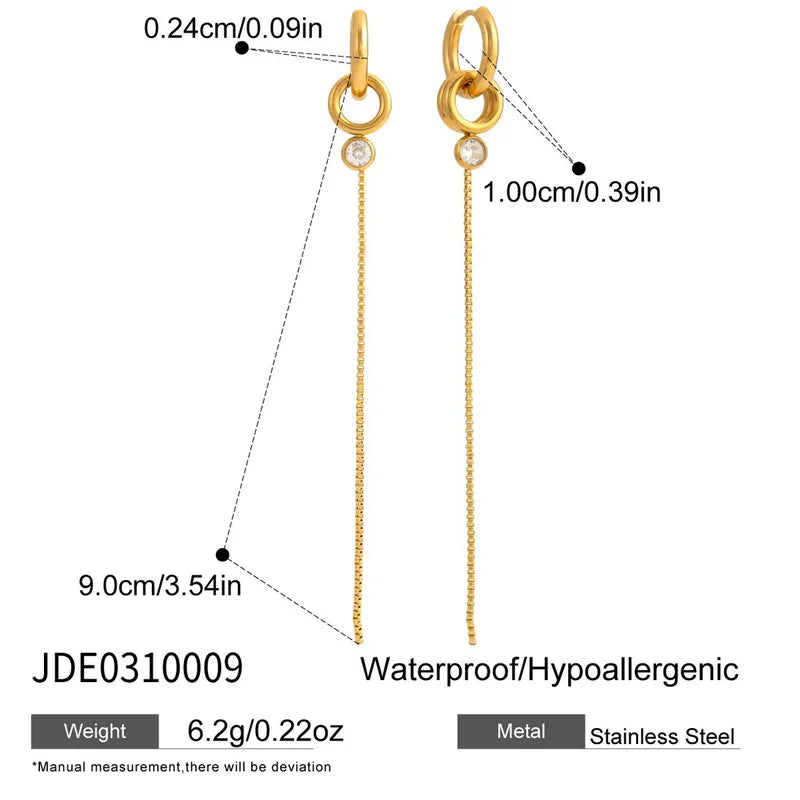 Σκουλαρίκια επιχρυσωμένο ατσάλι με μακρυά αλυσίδα και zircon-EA048