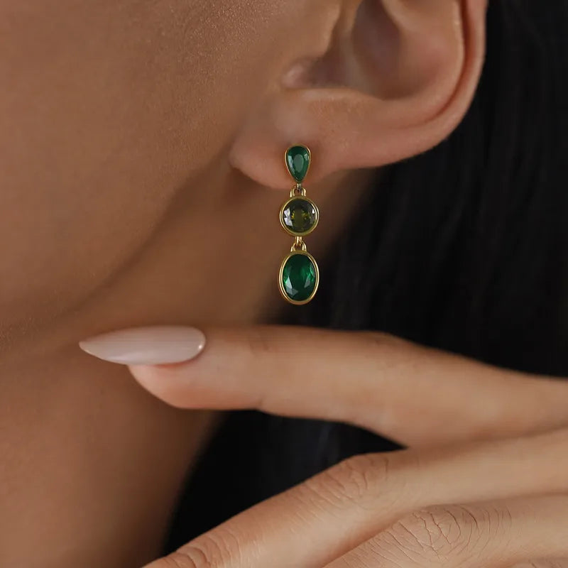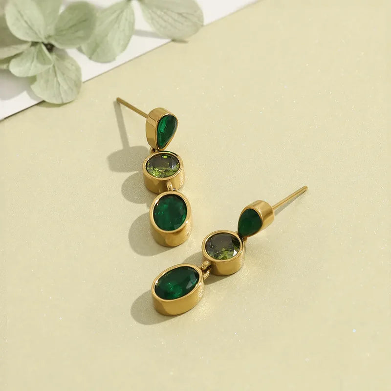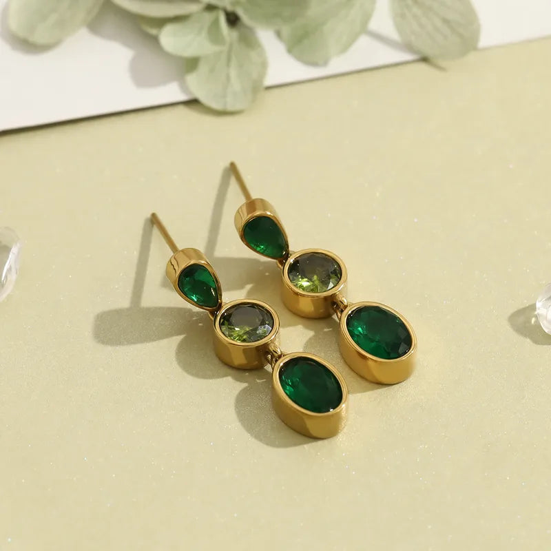 Σκουλαρίκια επιχρυσωμένο ατσάλι με πράσινο zircon-EA228