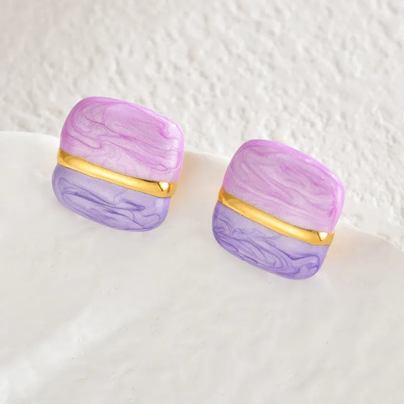 Σκουλαρίκια επιχρυσωμένο ατσάλι τετράγωνα μωβ-EA753