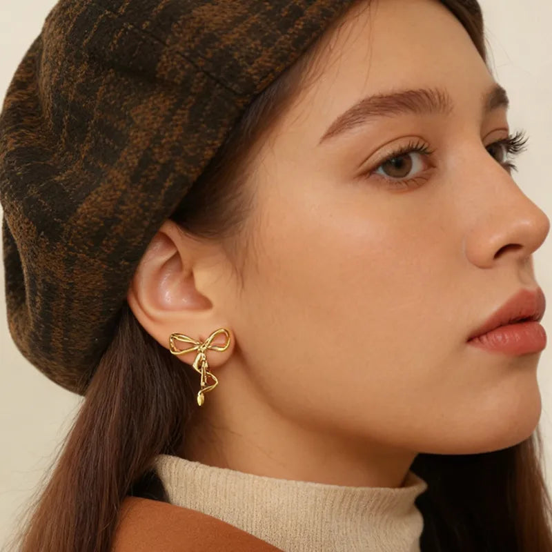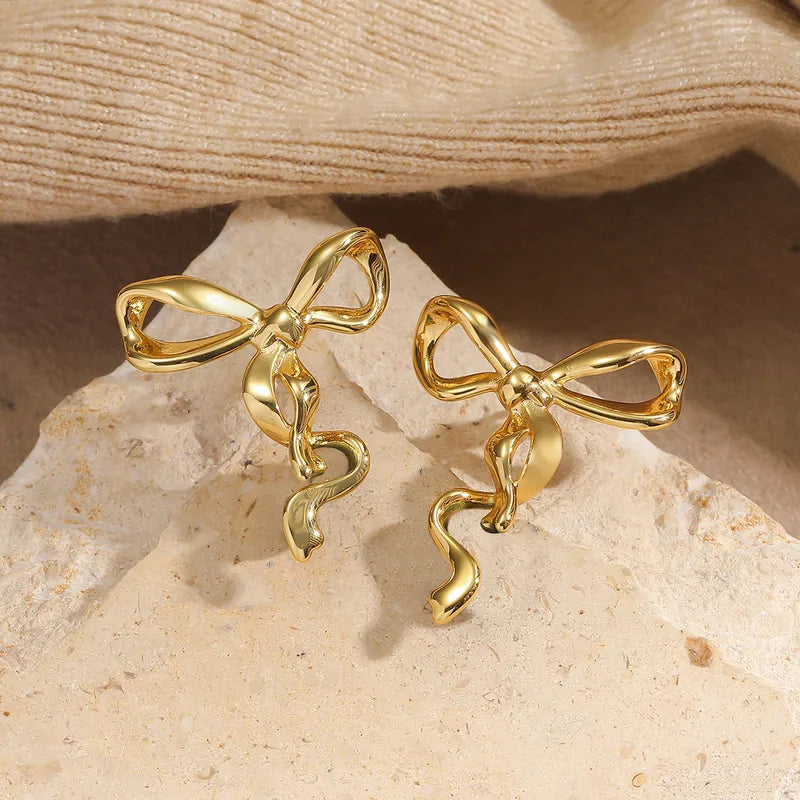 Σκουλαρίκια επιχρυσωμένο ατσάλι φιόγκος-EA673