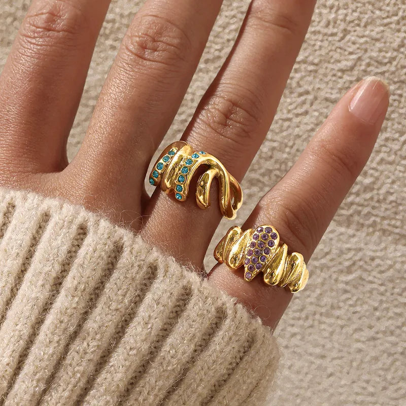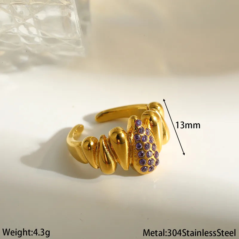 Inel din oțel placat cu aur cu rhinestone mov - R067