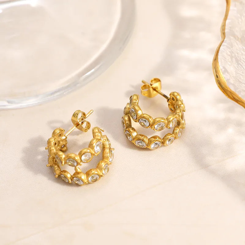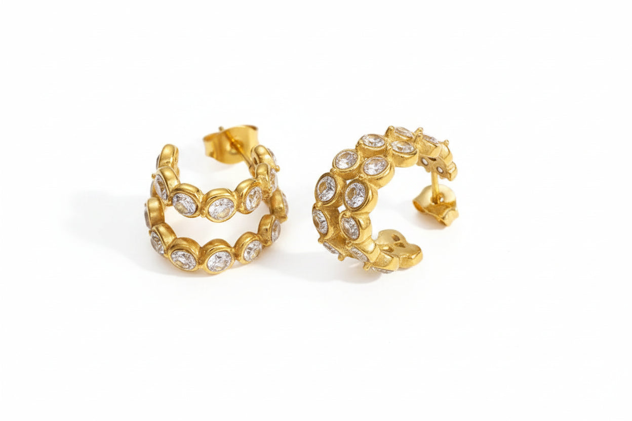 Σκουλαρίκια επιχρυσωμένο ατσάλι με κρύσταλλα-EA197