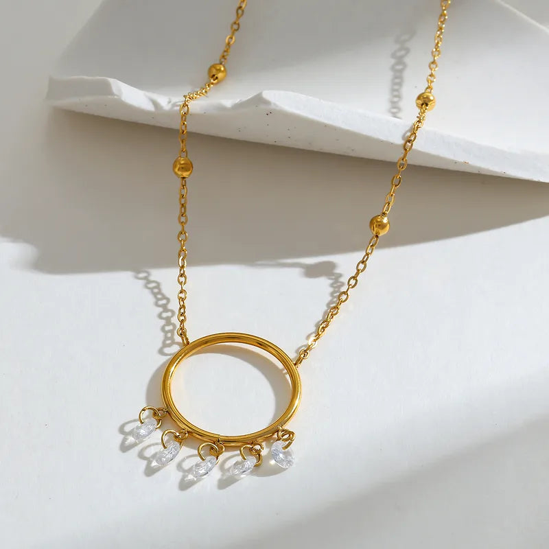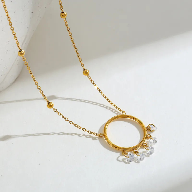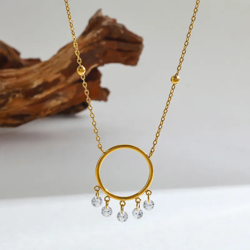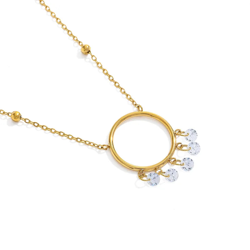 Colier cerc din oțel placat cu aur cu zircon-NE048
