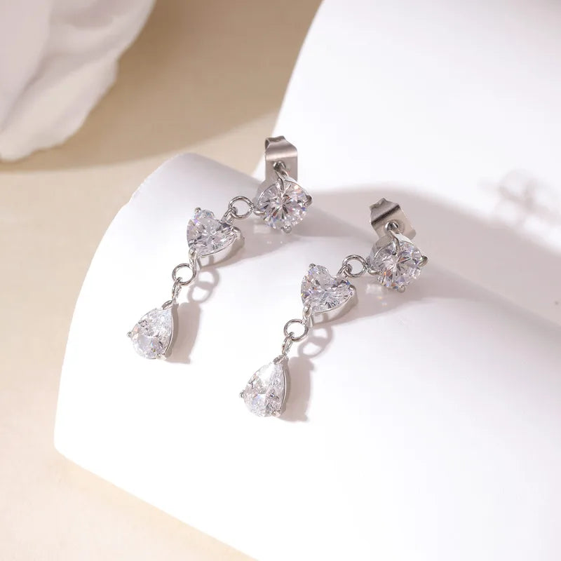 Σκουλαρίκια ατσάλι κρεμαστά με zircon-EA333