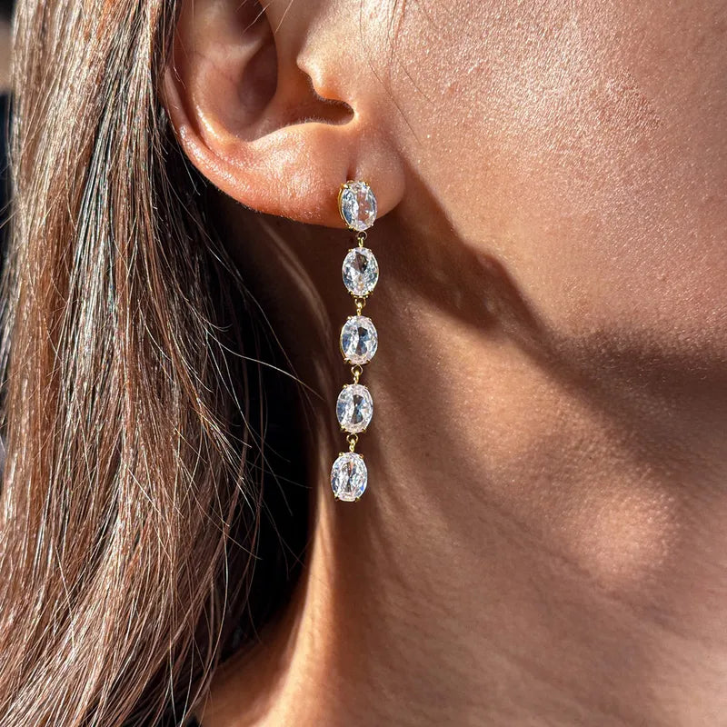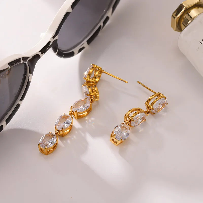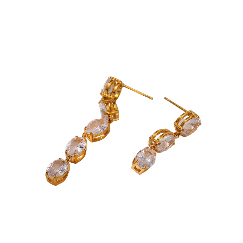 Cercei lungi din oțel placat cu aur cu zircon-EA486