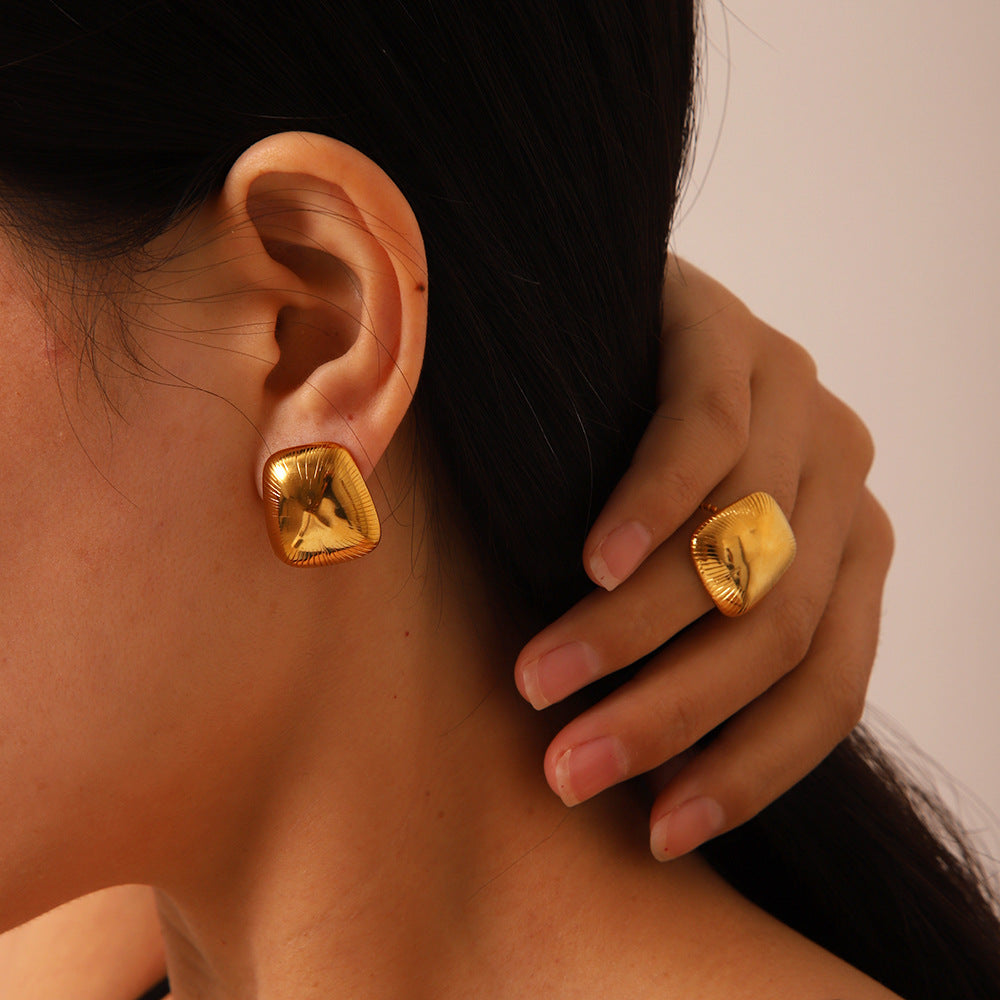 Cercei patrati din otel placat cu aur-EA021
