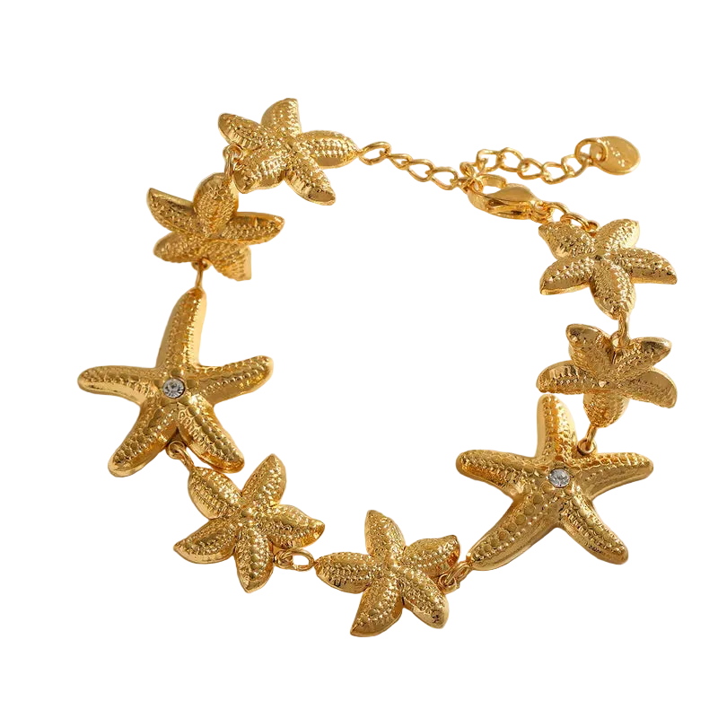 Βραχιόλι ατσάλι με αστερίες και στρας- BR429