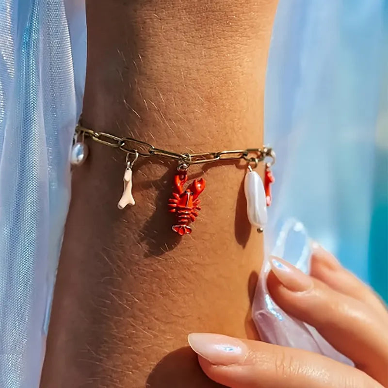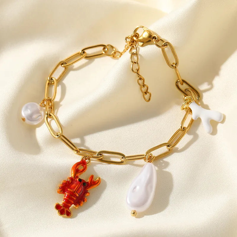 Bratara din otel placat cu aur cu homar si perle-