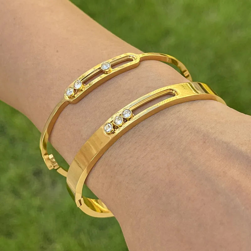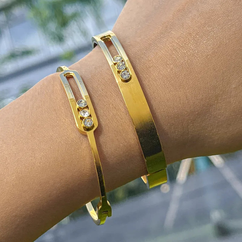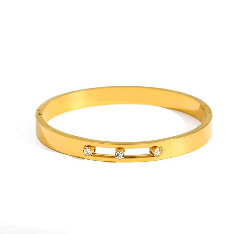 Bratara din otel placat cu aur cu trei zirconi-BR145