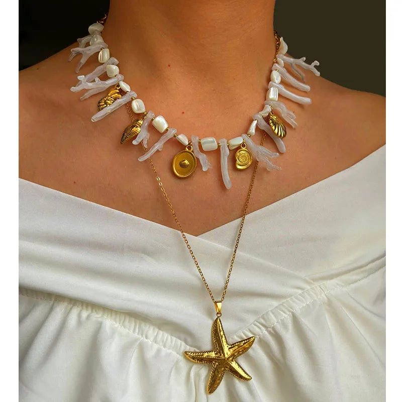 Κολιέ επιχρυσωμένο ατσάλι με αστερία - NE704