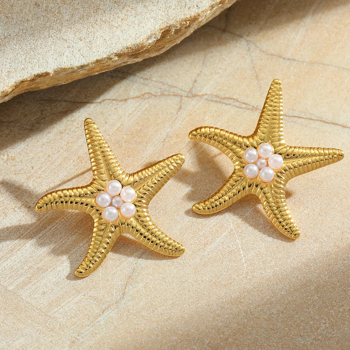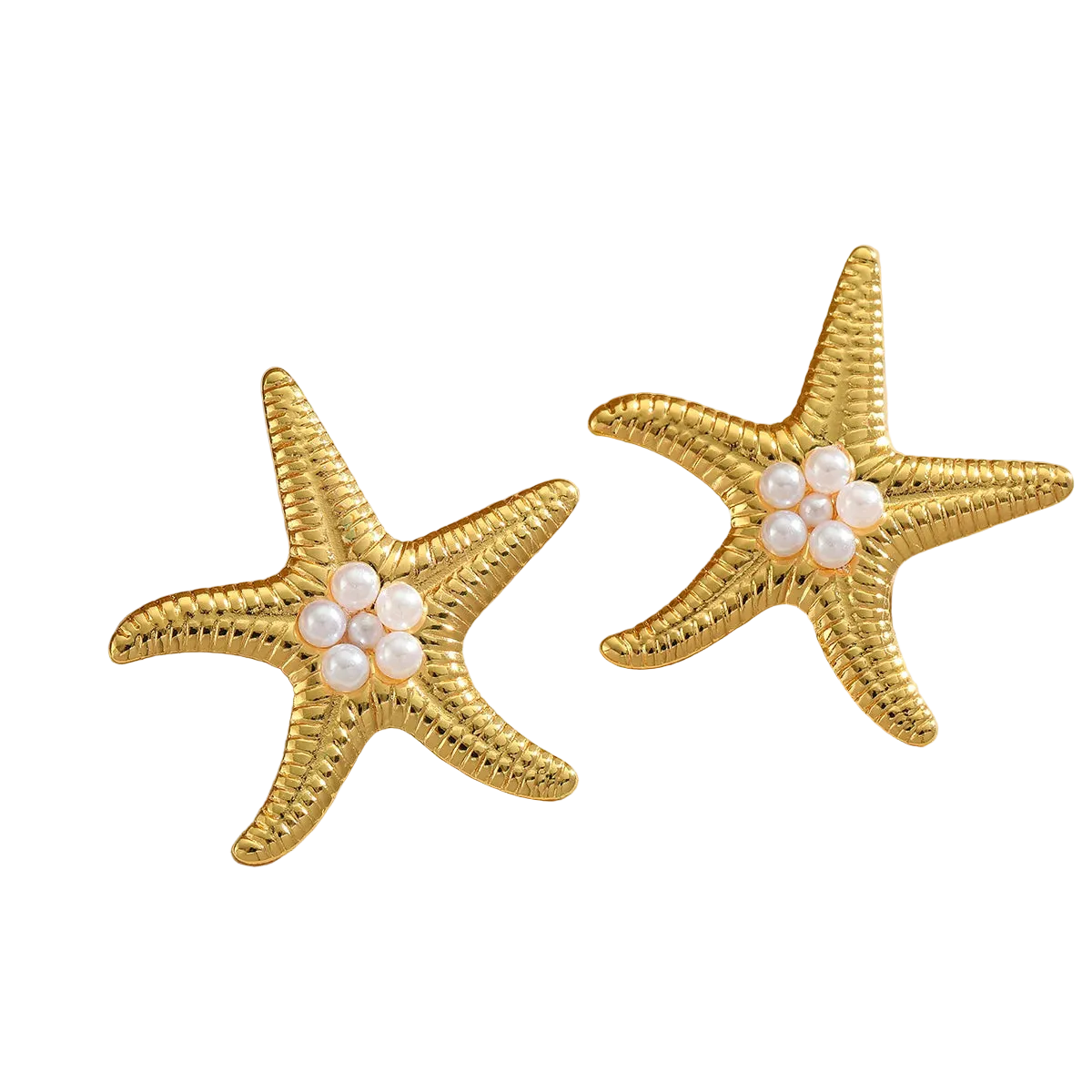 Σκουλαρίκια επιχρυσωμένο ατσάλι αστερίες με πέρλες- EA782