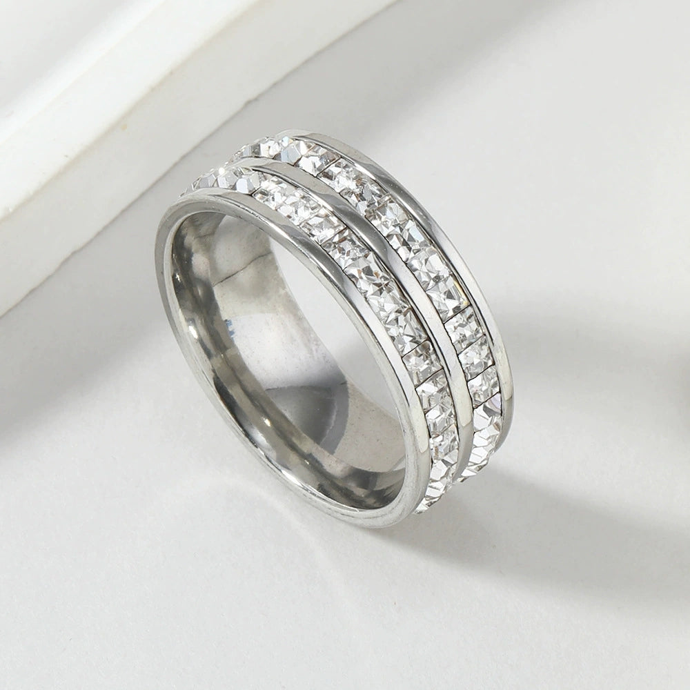 Δαχτυλίδι ατσάλι διπλό με στρας-R189