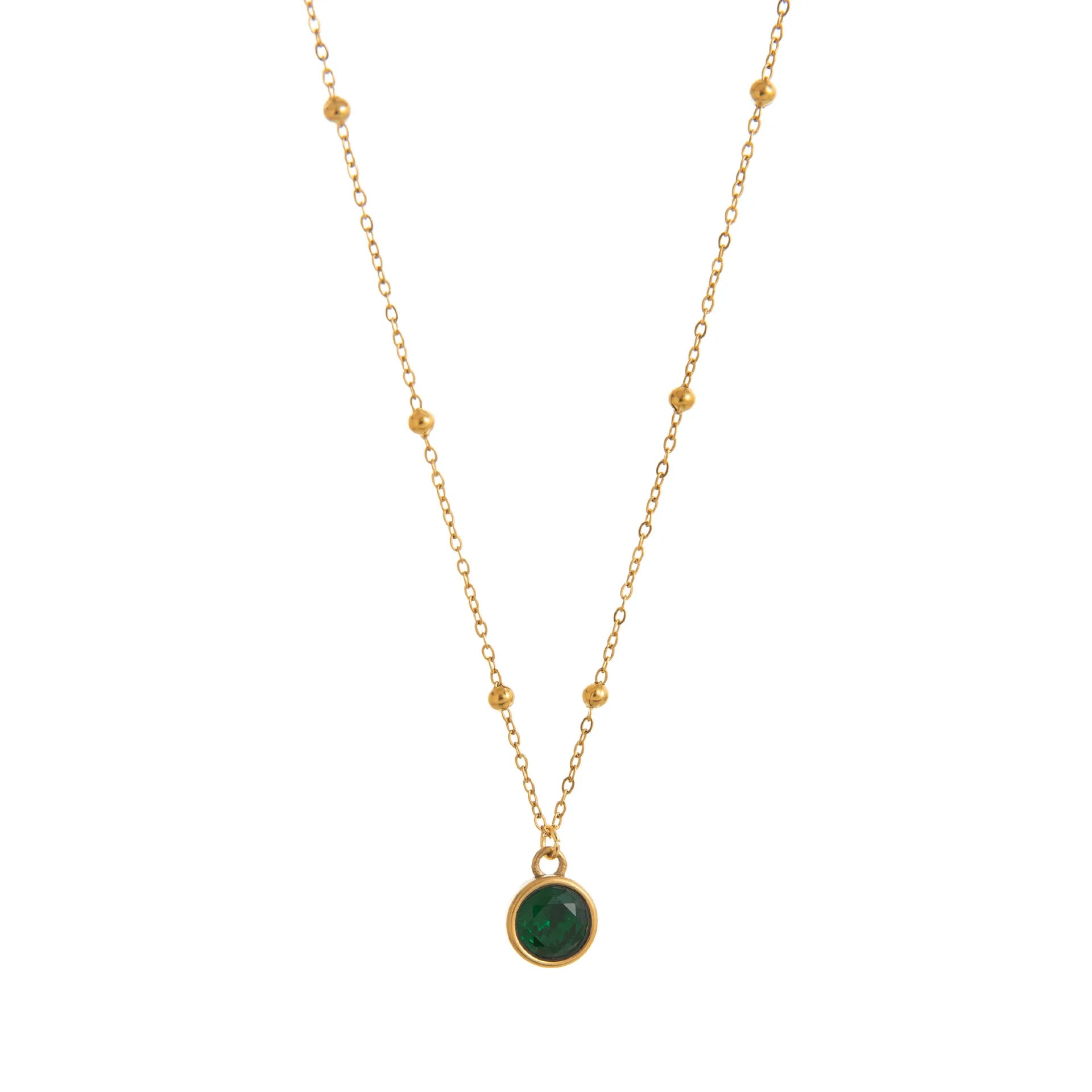 *Colier din oțel placat cu aur cu zircon negru-NE093